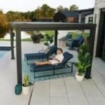 16×12 trenton modern steel pergola with sail shade soft canopy