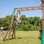 The Sky Fort II will elevate your children’s imaginations — and your landscape. With raised clubhouse, roomy porch, and crow’s nest complete with its own telescope, this towering play and will feel like their own wooden castle. And there are plenty of fun, safe ways to move around this personal palace: a full length of monkey bars swings them straight into the raised clubhouse, a challenging rock wall allows them to climb directly onto the porch, and a 10 foot wave slide slithers them right back down.