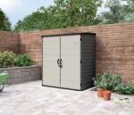 This Extra Large Vertical Shed is perfect for storing a variety of lawn and garden equipment. The slim footprint design fits nicely along a house or garage for when yard space is limited. Double-door entry allows you to access up to 106 cu. ft. of storage space and is equipped with pad-lockable handles for added security (lock not included). Constructed of multi-wall resin panels, this durable shed can hold up to the elements and protect your items all year long.